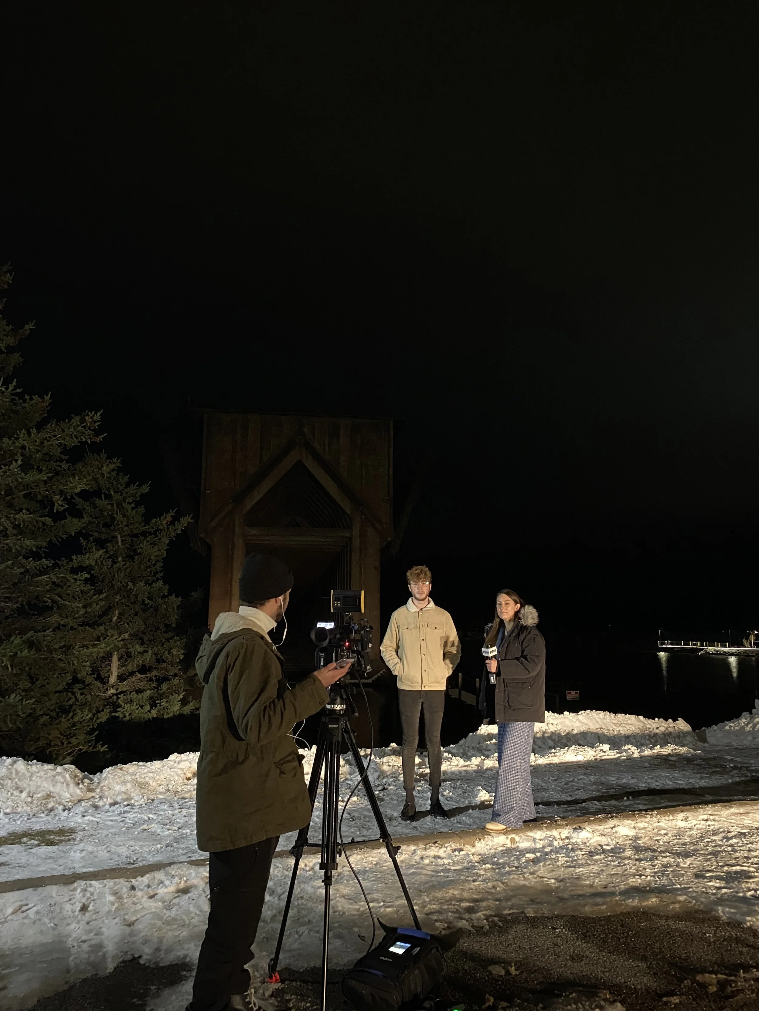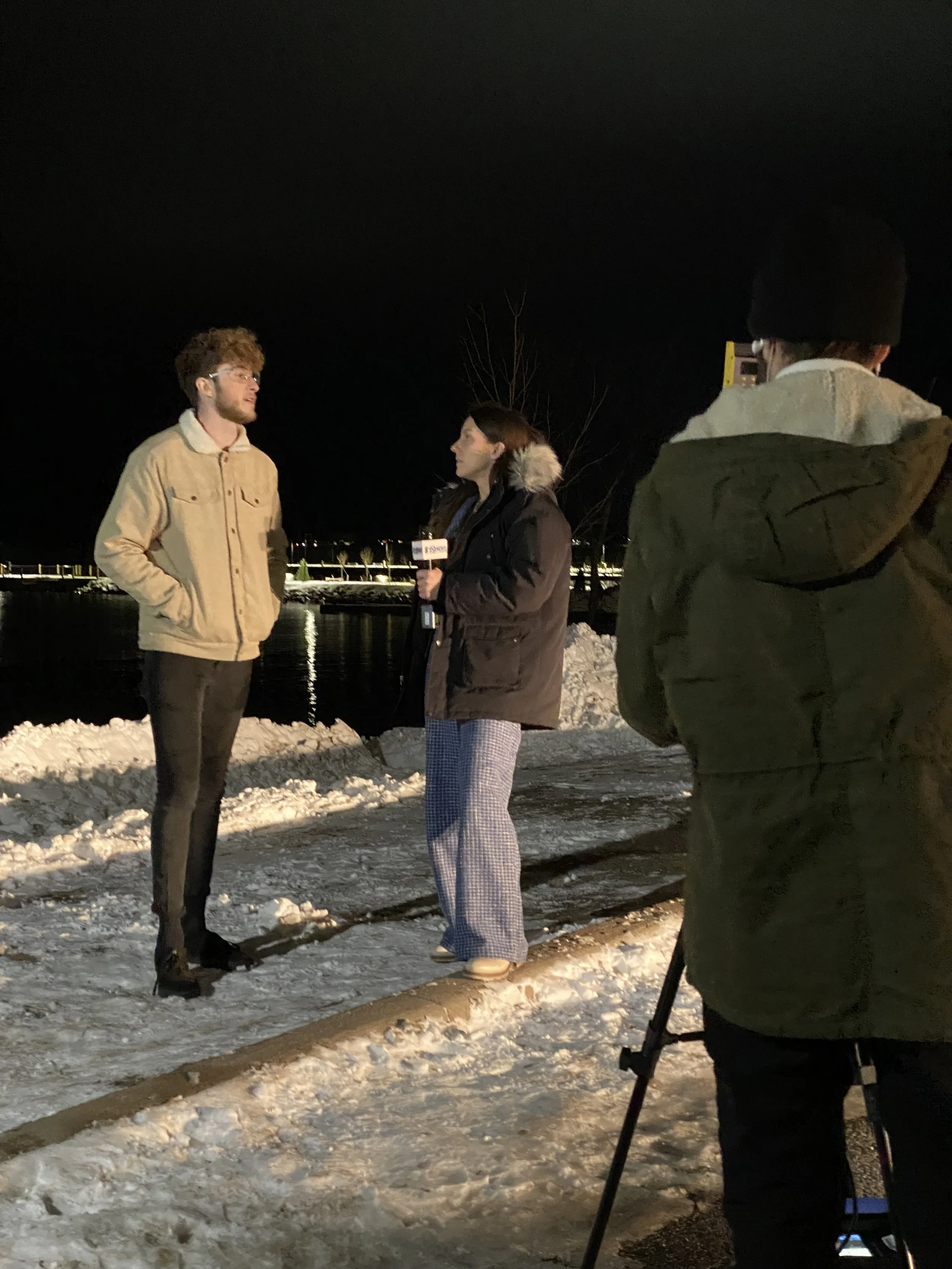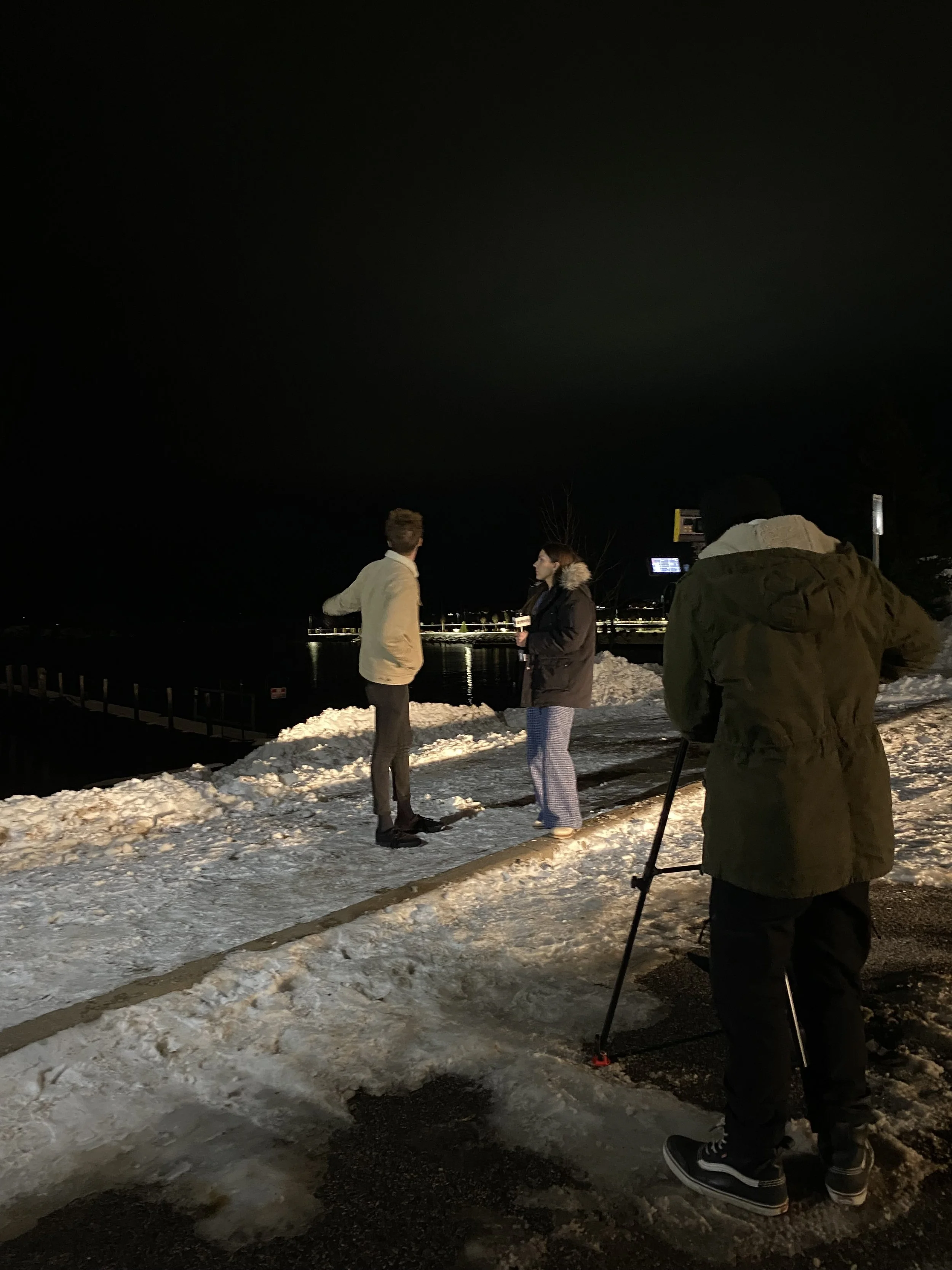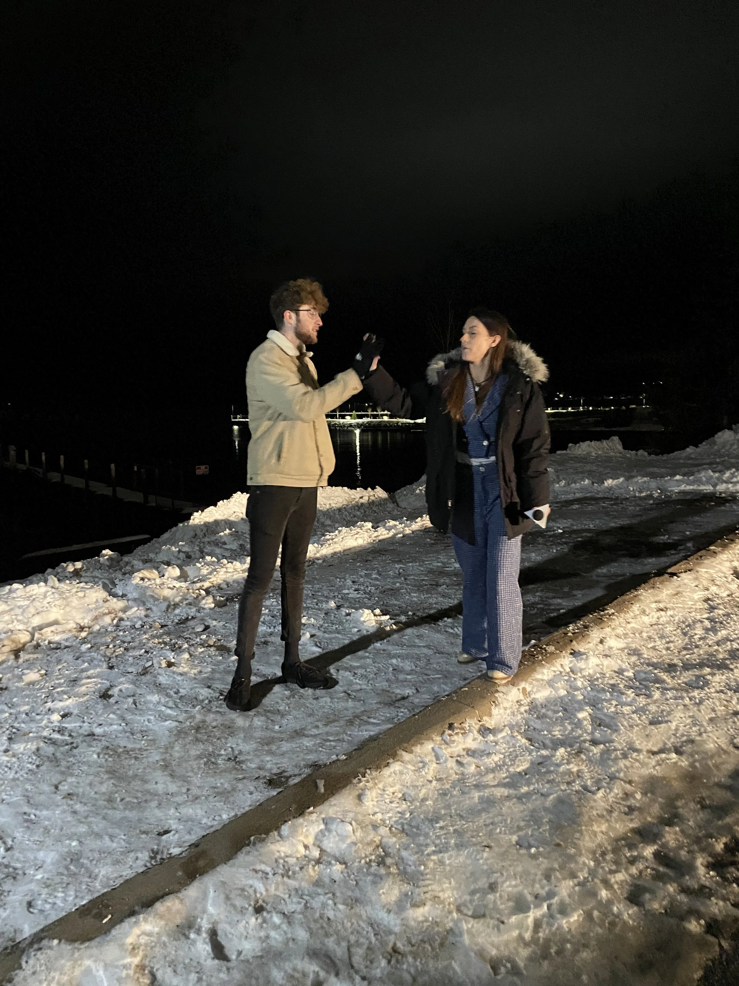 The interview was shot in front of the Ore Dock in Marquette, MI. We celebrated a successful interview with a post-wrap high five.